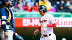 [OSEN=문학, 민경훈 기자] 24일 오후 인천 문학구장에서 ‘2013 한국야쿠르트 세븐 프로야구’ SK 와이번스와 NC 다이노스의 시범경기가 열렸다. 4회말 무사 주자 2루 SK 최정이 중견수 앞 동점 1타점 적시타때 홈을 밟은 한동민이 덕