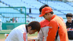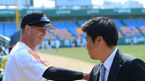 [OSEN=대전,박준형 기자] 24일 오후 대전구장에서 열린 '2013 한국야쿠르트 세븐 프로야구' 한화 이글스와 롯데 자이언츠의 시범경기, 경기에 앞서 롯데 장성호가 한화 김종모 타격코치와 인사를 하고 있다. 지난 23일 롯데와 한화