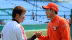[OSEN=대전,박준형 기자] 24일 오후 대전구장에서 열린 '2013 한국야쿠르트 세븐 프로야구' 한화 이글스와 롯데 자이언츠의 시범경기, 경기에 앞서 박재홍 해설위원과 한화 이종범 코치가 카메라를 향해 포즈를 취하고 있다 지난 23