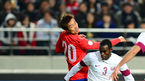 [OSEN=서울월드컵경기장 ,백승철 기자] 26일 오후 서울월드컵경기장에서 열린 '2014 브라질 월드컵 최종예선 5차전' 대한민국과 카타르의 경기 후반 카타르 칼판이 골을 넣은 후 환호하고 있다. 한국은 2승 1무 1패(승점 7점)로 1경기