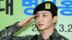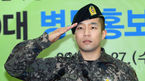 [OSEN=정송이 기자] 27일 오전 서울지방병무청 대회의실에서 진행된 '제 10대 병무홍보대사 위촉식'에서 이특이 거수경례를 하고 있다. 이상철(상추), 박정수(이특) 홍보대사는 일일 명예 징병관으로 활동 하는 등 병무 홍보대사