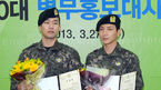 [OSEN=정송이 기자] 27일 오전 서울지방병무청 대회의실에서 진행된 '제 10대 병무홍보대사 위촉식'에서 상추, 이특이 포토타임을 갖고 있다. 이상철(상추), 박정수(이특) 홍보대사는 일일 명예 징병관으로 활동 하는 등 병무 홍보
