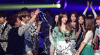 [OSEN=이대선 기자] Mnet 엠카운트다운 (엠카)이 28일 오후 서울 상암동 CJ E&M 센터에서 열렸다. 가수 허각과 샤이니 종현이 1위를 차지한 그룹 다비치 강민경을 향해 리본을 날리고 있다. 이날 엠카는 샤이니,인피니트,틴탑,제아