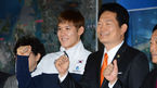 [OSEN=인천,박준형 기자] 28일 오후 인천시청에서 진행된 인천시청 수영부 공식 입단식에서 박태환이 송영길 인천시장과 포옹을 하고 있다 한국 수영의 '간판스타' 박태환은 송영길 인천시장, 아버지 박인호씨 등과 함께 참석했