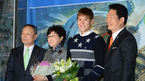 [OSEN=인천,박준형 기자] 28일 오후 인천시청에서 진행된 인천시청 수영부 공식 입단식에서 박태환이 가족과 함께 포즈를 취하고 있다 한국 수영의 '간판스타' 박태환은 송영길 인천시장, 아버지 박인호씨 등과 함께 참석했다. 내