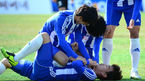 [OSEN=경산, 이대선 기자] 29일 경상북도 경산 영남대학교에서 열린 '2013 카페베네 U리그' 개막전 영남대와 부경대의 경기, 후반전 영남대 장순규가 역전골을 성공시키고 동료들의 축하를 받고 있다. U리그는 국내 76개 대학축구팀