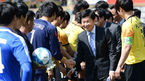 [OSEN=경산, 이대선 기자] 29일 경상북도 경산 영남대학교에서 열린 '2013 카페베네 U리그' 개막전 영남대와 부경대의 경기, 경기에 앞서 정몽규 대한축구협회 회장이 선수들을 격려하고 있다. U리그는 국내 76개 대학축구팀이 참가