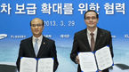 [OSEN=강희수 기자] 르노삼성자동차(대표이사: 프랑수아 프로보)가29일 오전 일산 킨텍스에서 프랑수아 프로보 르노삼성자동차 사장과 정연만 환경부 차관, 원춘건 한국전기차산업협회 회장, 5개 참여기업(LG화학, 포스코, 씨티카