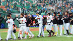[OSEN=부산 ,백승철 기자] 30일 오후 부산 사직구장에서 열린 '2013 한국야쿠르트 세븐 프로야구' 롯데 자이언츠와 한화 이글스의 경기 종료 후 끝내기 희생플라이를 친 박종윤이 동료들에게 축하를 받고 있다. 롯데가 한화를 꺾고