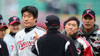 [OSEN=부산 ,백승철 기자] 30일 오후 부산 사직구장에서 열린 '2013 한국야쿠르트 세븐 프로야구' 롯데 자이언츠와 한화 이글스의 경기 8회말 1사 황재균의 직선타구를 잡은 조정원에게 이대수가 박수를 보내고 있다. 이날 사직구장