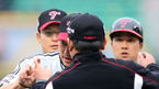 [OSEN=부산 ,백승철 기자] 30일 오후 부산 사직구장에서 열린 '2013 한국야쿠르트 세븐 프로야구' 롯데 자이언츠와 한화 이글스의 경기 7회말 1사 3루 강민호의 파울타구를 정범모와 오선진이 잡으려다 충돌하고 있다. 이날 사직구