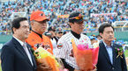 [OSEN=부산 ,백승철 기자] 30일 오후 부산 사직구장에서 열린 '2013 한국야쿠르트 세븐 프로야구' 롯데 자이언츠와 한화 이글스의 경기 시작 전 열린 공식행사에서 김응룡 감독과 김시진 감독이 기념촬영을 하고 있다. 이날 사직구