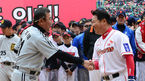 [OSEN=인천,지형준 기자] 30일 오후 인천 문학구장에서 2013 한국야쿠르트 세븐프로야구 SK 와이번스와 LG 트윈스의 개막전이 열렸다. 경기에 앞서 LG 김기태 감독과 SK 이만수 감독이 악수를 나누고 있다. 이날 선발로는 SK 조조 레