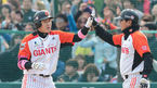 [OSEN=부산 ,백승철 기자] 31일 오후 부산 사직구장에서 열린 '2013 한국야쿠르트 세븐 프로야구' 롯데 자이언츠와 한화 이글스의 경기 6회말 2사 1,3루 전준우의 1타점 적시타에 홈을 밟은 3루주자 박준서가 옥스프링과 하이파이브