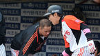 [OSEN=부산 ,백승철 기자] 31일 오후 부산 사직구장에서 열린 '2013 한국야쿠르트 세븐 프로야구' 롯데 자이언츠와 한화 이글스의 경기 6회말 2사 2,3루 조성환의 타석, 김태균이 임기영에게 격려를 하고 있다. 롯데는 전날 열린 한화