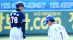 [OSEN=광주,박준형 기자] 31일 오후 광주 무등구장에서 열린 '2013 한국야쿠르트 세븐 프로야구' KIA 타이거즈와 넥센 히어로즈의 경기,1회초 넥센 선두타자 서건창이 사사구로 진루했다. 선동렬 감독이 그라운드에 올라 윤상원 구