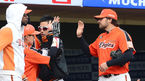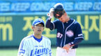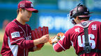 [OSEN=광주,박준형 기자] 31일 오후 광주 무등구장에서 열린 '2013 한국야쿠르트 세븐 프로야구' KIA 타이거즈와 넥센 히어로즈의 경기,3회말 이닝 종료 후 넥센 선발투수 김병현이 박동원 포수와 하이파이브를 하며 더그아웃으로