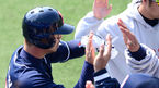 [OSEN=인천, 최규한 기자] 31일 오후 인천 문학구장에서 '2013 한국야쿠르트 세븐프로야구' SK 와이번스와 LG 트윈스의 경기가 열렸다. 2회초 LG 공격 2사 주자 없는 상황 8번 현재윤이 솔로포를 날리고 덕아웃 동료들과 인사를 나누