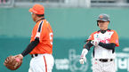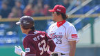 [OSEN=부산 ,백승철 기자] 31일 오후 부산 사직구장에서 열린 '2013 한국야쿠르트 세븐 프로야구' 롯데 자이언츠와 한화 이글스의 경기 2회말 무사 2루 황재균에게 내야안타를 허용한 이브랜드가 한승택과 이야기를 나누고 있다. 롯