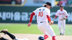 [OSEN=인천, 최규한 기자] 31일 오후 인천 문학구장에서 '2013 한국야쿠르트 세븐프로야구' SK 와이번스와 LG 트윈스의 경기가 열렸다. 2회초 LG 공격 2사 주자 없는 상황 8번 현재윤이 솔로포를 날리고 모자를 벗으며 덕아웃으로 들