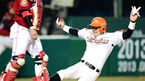 [OSEN=대전, 이대선 기자] 2일 오후 대전 한밭종합운동장 야구장에서 2013 한국야쿠르트 세븐프로야구 한화 이글스와 KIA 타이거즈의 경기가 열렸다. 3회말 1사 2,3루 한화 김태균의 희생플라이 때 3루주자 이대수가 홈으로 쇄도해
