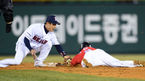 [OSEN=잠실, 최규한 기자] 2일 오후 서울 잠실야구장에서 '2013 한국야쿠르트 세븐프로야구' 두산 베어스 대 SK 와이번스의 경기가 열렸다. 4회초 SK 공격 무사 1루 상황 주자 정근우가 2루 도루를 시도하다 두산 유격수 손시헌의 태