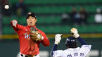 [OSEN=잠실, 최규한 기자] 2일 오후 서울 잠실야구장에서 '2013 한국야쿠르트 세븐프로야구' 두산 베어스 대 SK 와이번스의 경기가 열렸다. 4회말 두산 공격 무사 1루 상황 8번 양의지의 땅볼 타구 때 SK 2루수 정근우가 병살플레이를