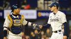 [OSEN=창원 ,백승철 기자] 2일 오후 창원 마산구장에서 열린 '2013 한국야쿠르트 세븐 프로야구' NC 다이노스와 롯데 자이언츠의 경기 5회초를 마친 아담이 덕아웃으로 향하며 김태군과 하이파이브를 하고 있다. 프로야구 태동 31년