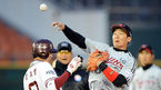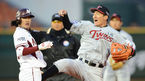 [OSEN=목동,박준형 기자 2일 오후 서울 목동구장에서 열린 '2013 한국야쿠르트 세븐 프로야구' 넥센 히어로즈와 LG 트윈스의 경기 1회말 무사 1루 넥센 서건창의 내야땅볼때 LG 손주인이 1루 주자 장기영과 충돌하고 있다. 그사이 타