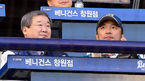 [OSEN=창원 ,백승철 기자] 2일 오후 창원 마산구장에서 열린 '2013 한국야쿠르트 세븐 프로야구' NC 다이노스와 롯데 자이언츠의 경기 시작 전, 구본능 총재와 김택진 NC 구단주가 관중석에 앉아 있다. 프로야구 태동 31년 만에 탄생