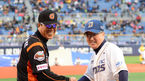 [OSEN=창원 ,백승철 기자] 2일 오후 창원 마산구장에서 열린 '2013 한국야쿠르트 세븐 프로야구' NC 다이노스와 롯데 자이언츠의 경기 시작 전 김시진 감독과 김경문 감독이 악수를 나누고 있다. 프로야구 태동 31년 만에 탄생한 9번