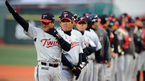 [OSEN=목동,박준형 기자 2일 오후 서울 목동구장에서 열린 '2013 한국야쿠르트 세븐 프로야구' 넥센 히어로즈와 LG 트윈스의 경기 홈 경기 개막행사에서 LG 김기태 감독이 턱돌이와 손가락 세레모니를 하고 있다 LG와의 홈 개막전에