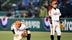 [OSEN=대전, 이대선 기자] 2일 오후 대전 한밭종합운동장 야구장에서 2013 한국야쿠르트 세븐프로야구 한화 이글스와 KIA 타이거즈의 경기가 열렸다. 9회초 1사 만루 KIA 최희섭의 내야안타 때 실책으로 KIA에게 2점을 허용한 한화 김
