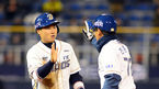 [OSEN=창원 ,백승철 기자] 3일 오후 창원 마산구장에서 열린 '2013 한국야쿠르트 세븐 프로야구' NC 다이노스와 롯데 자이언츠의 경기 8회말 선두타자 김태군이 우중간 2루타를 치고 전준호 코치와 하이파이브를 하고 있다. 창단 첫