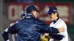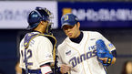 [OSEN=창원 ,백승철 기자] 3일 오후 창원 마산구장에서 열린 '2013 한국야쿠르트 세븐 프로야구' NC 다이노스와 롯데 자이언츠의 경기 8회초 1사 2루 전준우를 플라이아웃으로 처리한 고창성이 김태군과 이야기를 나누고 있다. 창단
