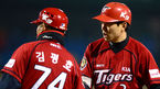 [OSEN=대전, 이대선 기자] 3일 오후 대전 한밭종합운동장 야구장에서 2013 한국야쿠르트 세븐프로야구 한화 이글스와 KIA 타이거즈의 경기가 열렸다. 5회초 무사 만루에서 KIA 신종길이 좌전 2타점 적시타를 치고 김평호 코치와 하
