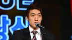 [OSEN=정송이 기자] NH농협 2012~2013 V-리그 시상식이 3일 오후 서울 여의도 63컨벤션센터 그랜드볼룸에서 열렸다. 신인선수상을 수상한 양준식이 수상소감을 말하고 있다. 감독상을 수상한 신치용감독에게 레오가 축하 꽃다발을