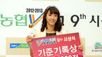 [OSEN=정송이 기자] NH농협 2012~2013 V-리그 시상식이 3일 오후 서울 여의도 63컨벤션센터 그랜드볼룸에서 열렸다. 기준기록상을 수상한 한송이가 포토타임을 갖고 있다. 이번 시상식에서는 정규리그 MVP 및 신인선수상과 2012~2013 V-리