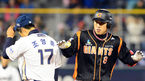 [OSEN=창원 ,백승철 기자] 3일 오후 창원 마산구장에서 열린 '2013 한국야쿠르트 세븐 프로야구' NC 다이노스와 롯데 자이언츠의 경기 10회초 1사 2루 전준우의 1타점 2루타에 손아섭이 홈을 밟고 있다. 창단 첫 1군 경기였던 전날 NC는