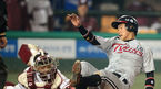 [OSEN=목동,지형준 기자] 4일 오후 서울 목동야구장에서 2013 한국야쿠르트 세븐프로야구 넥센 히어로즈와 LG 트윈스의 경기가 열렸다. 7회초 무사 2루에서 LG 정주현의 동점 1타점 적시 3루타에 홈을 밟은 현재윤이 더그아웃에서