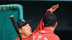 [OSEN=잠실,박준형 기자] 4일 오후 서울 잠실구장에서 열리는 2013 한국야쿠르트 세븐 프로야구 두산 베어스와 SK 와이번스의 경기, 경기에 앞서 SK 이만수 감독이 조인성에게 전날 타격에 대한 코치를 하고 있다 두산은 우완 김상