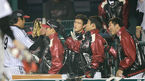 [OSEN=잠실, 곽영래 기자] 5일 오후 서울 잠실구장에서 열린 '2013 한국야쿠르트 세븐 프로야구' LG 트윈스와 두산 베어스의 경기, 7회초 2사 1,3루 LG 정현욱이 마운드에 올라 이닝을 마무리한 뒤 더그아웃에서 동료들과 기뻐하고 있