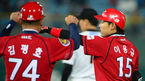 [OSEN=대전, 손용호기자] 5일 대전 한밭야구장에서 벌어진 한화 이글스와 넥센 히어로즈의 경기 8회말 2사 1,2루 염경엽 감독이 마운드에 올라 선수들을 진정시키고 있다. 한화는 지난달 30일 개막전인 사직 롯데전에서 9회말 끝내