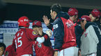 [OSEN=대전, 손용호기자] 5일 대전 한밭야구장에서 벌어진 한화 이글스와 넥센 히어로즈의 경기 5회말 2사 1,2루 김태균이 이대수가 삼진 당하자 아쉬워 하고 있다. 한화는 지난달 30일 개막전인 사직 롯데전에서 9회말 끝내기 희생