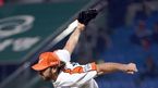 [OSEN=대전, 손용호기자] 5일 대전 한밭야구장에서 벌어진 한화 이글스와 넥센 히어로즈의 경기 4회초 2사 이브랜드가 유한준의 타구를 등을 돌린채 글러브를 뻗고 있다. 한화는 지난달 30일 개막전인 사직 롯데전에서 9회말 끝내