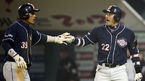 [OSEN=잠실, 곽영래 기자] 5일 오후 서울 잠실구장에서 열린 '2013 한국야쿠르트 세븐 프로야구' LG 트윈스와 두산 베어스의 경기, 3회초 2사 2,3루 두산 홍성흔이 김동주의 중견수 희생플라이로 득점을 올린 이종욱과 기뻐하고 있다.