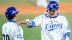 [OSEN=대구, 이대선 기자] 5일 오후 대구시민운동장 야구장에서 열린 2013 한국야쿠르트 세븐프로야구 삼성 라이온즈와 NC 다이노스의 경기, 1회말 1사 만루에서 삼성 채태인이 좌전 적시타를 치고 김태균 코치와 하이파이브를 하