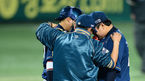 [OSEN=대구, 이대선 기자] 5일 오후 대구시민운동장 야구장에서 열린 2013 한국야쿠르트 세븐프로야구 삼성 라이온즈와 NC 다이노스의 경기, 1회말 무사 1,2루에서 삼성 최형우가 중전 적시타를 치고 김태균 코치와 하이파이브를 하
