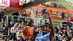 [OSEN=인천삼산체, 이대선 기자] 6일 오후 인천 삼산체육관에서 열린 'KB 국민카드 2012-2013 프로농구' 4강 플레이오프 울산 모비스와 인천 전자랜드의 경기, 3쿼터 모비스 라틀리프가 투핸드 덩크슛을 시도하고 있다. 유재학 감독이
