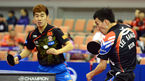 [OSEN=인천, 정송이 기자] 6일 오후 인천 송도글로벌대학교 체육관에서 열린 '2013 대한항공 2013 코리아 오픈 국제탁구대회' 8강 남자 복식 한국 이상수-중국 예얀과 한국 정영식-중국 왕하오의 2회전 경기, 정영식과 왕하오가 물을